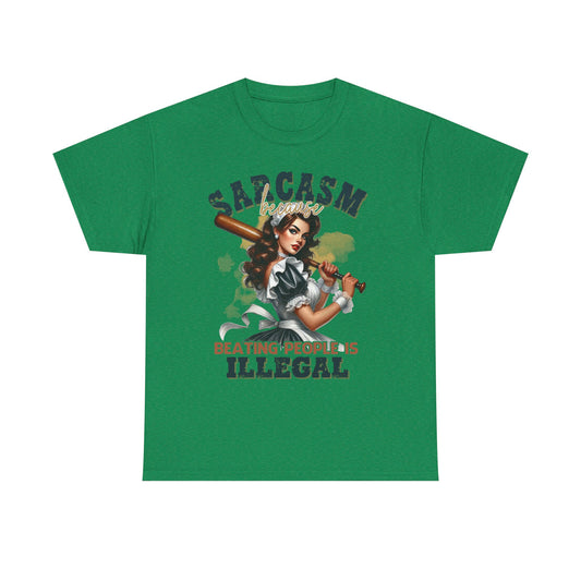 Beating People is Illegal' Sarcasm Heavy Cotton Tee - ' Graphic T-Shirt for Humor Lovers Asst. Colors & Sizes